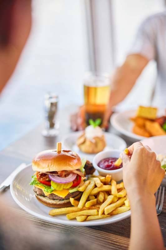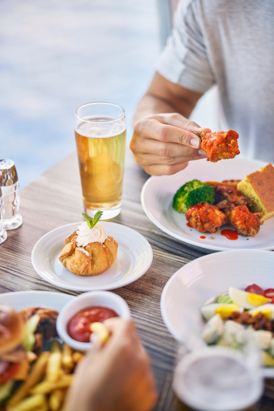 Perfect for busy families, the Windjammer buffet has something for every appetite. At breakfast, you’ll find scrambled eggs, bacon, pancakes, cereal, fresh fruit, and made-to-order omelets. Lunch and dinner bring everything from burgers and fries to international dishes and fresh salads—it’s a variety made simple. And the best part? Everyone can fill their plate their way.