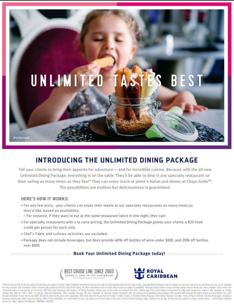 Dining & Beverage Packages (upgrade option for more variety and convenience)