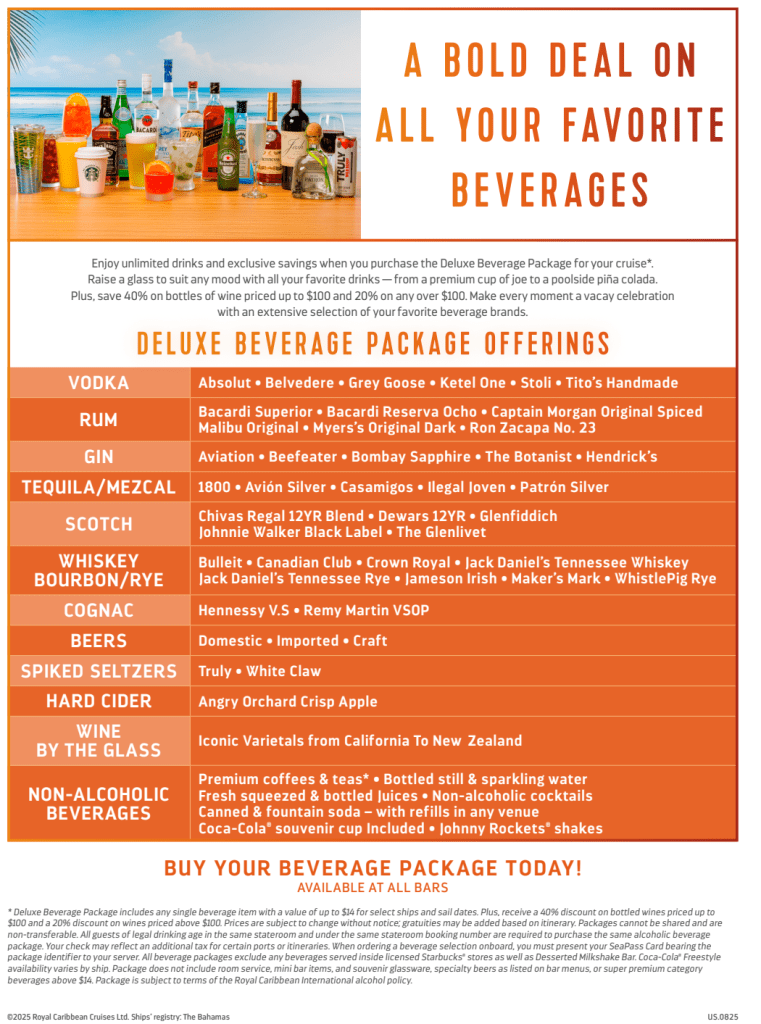 For drinks, Beverage Packages make it easy to keep everyone refreshed. Adults can enjoy unlimited soda, specialty coffees, mocktails, or cocktails depending on the package chosen, while kids can sip as many sodas or juices as they like with the Refreshment Package. These upgrades are optional—but they can add convenience and savings if your family enjoys variety.