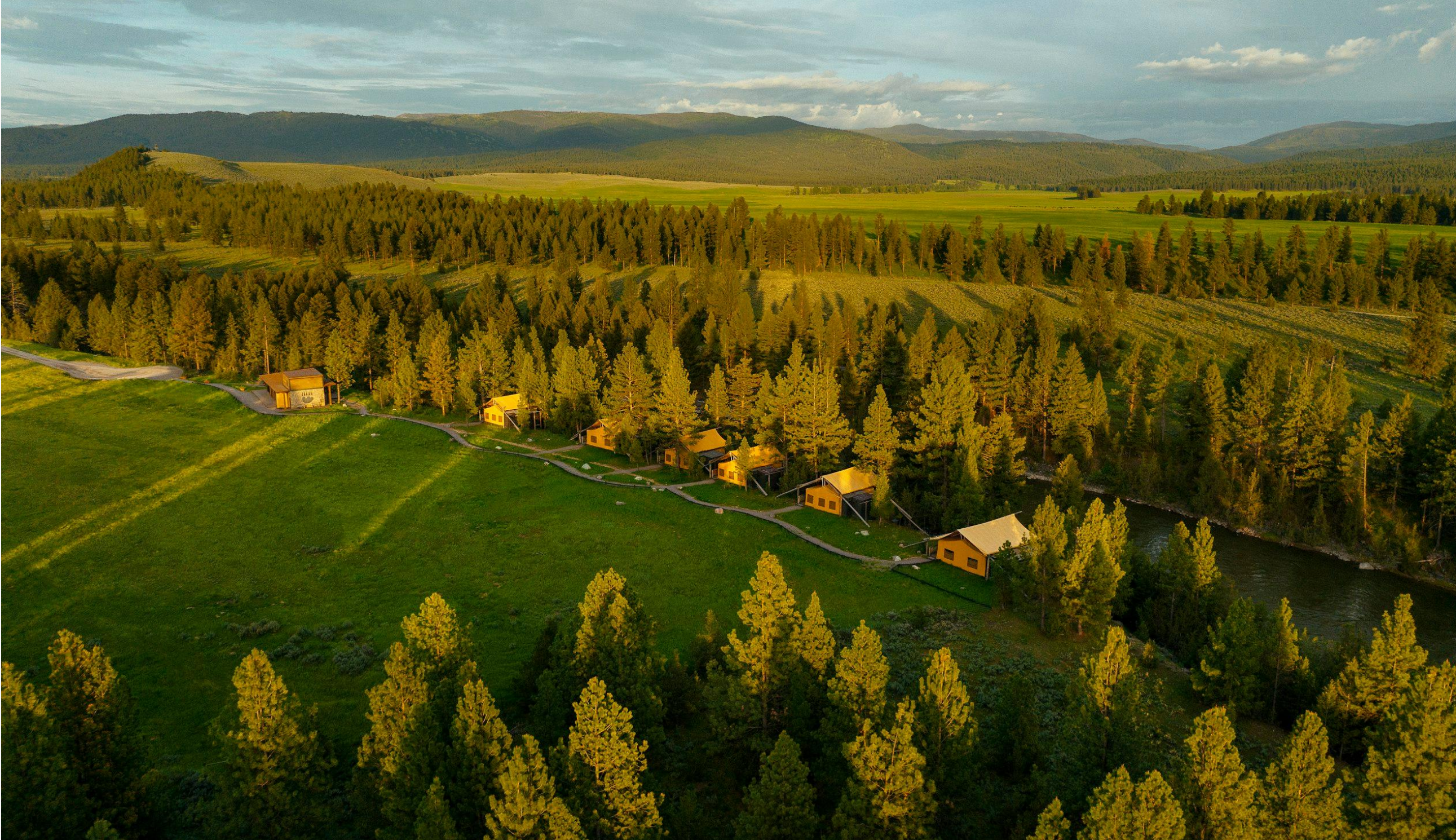 Accommodations here don’t just give you a place to sleep; they set the stage for your entire stay. Families and groups can spread out in timber homes with wood-burning fireplaces, hot tubs, and endless views of Montana’s rolling hills. Couples looking for something truly different might choose a safari-style tent along the Blackfoot River, where campfires and starry skies meet ensuite baths, stylish furnishings, and the care of a private chef and butler.